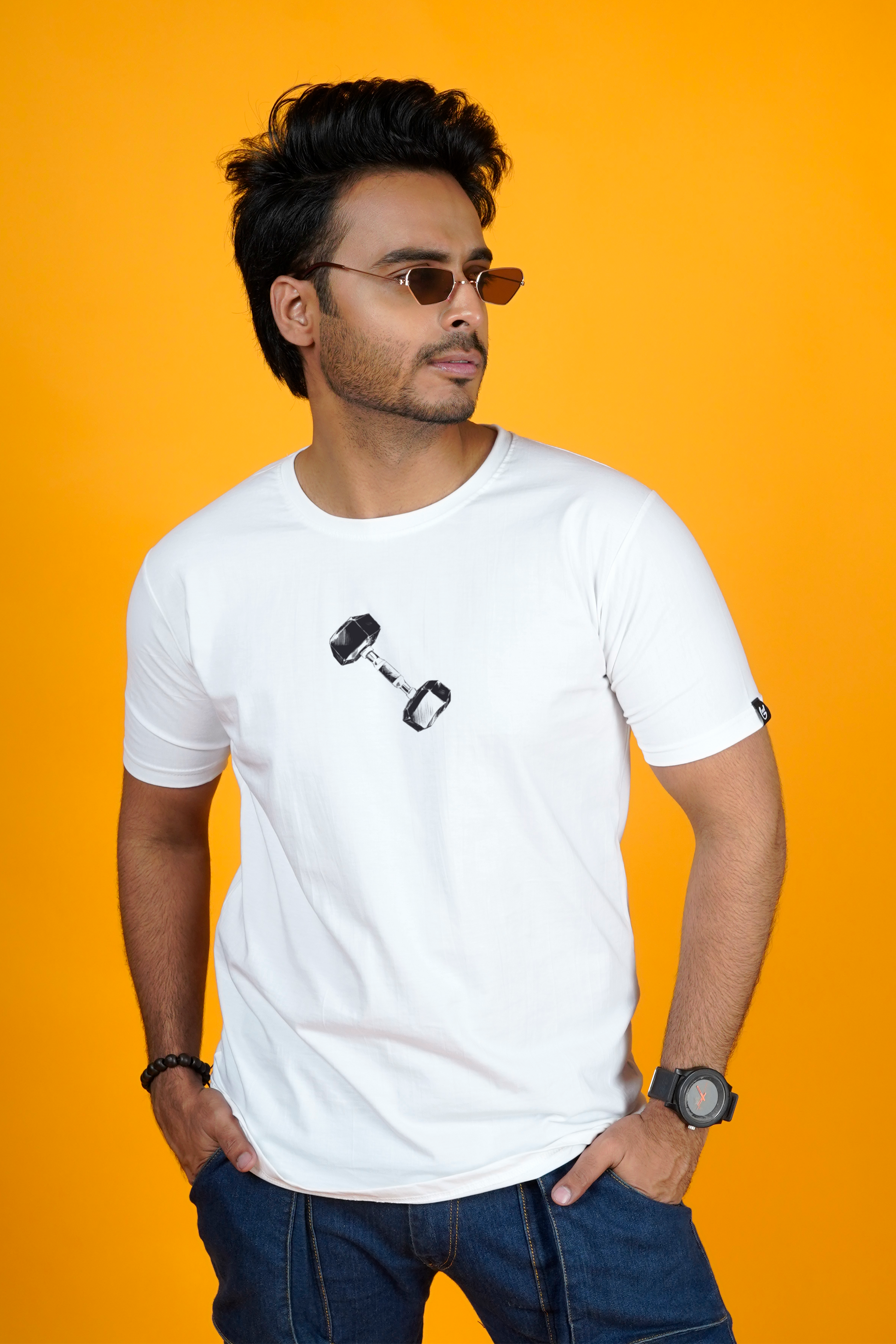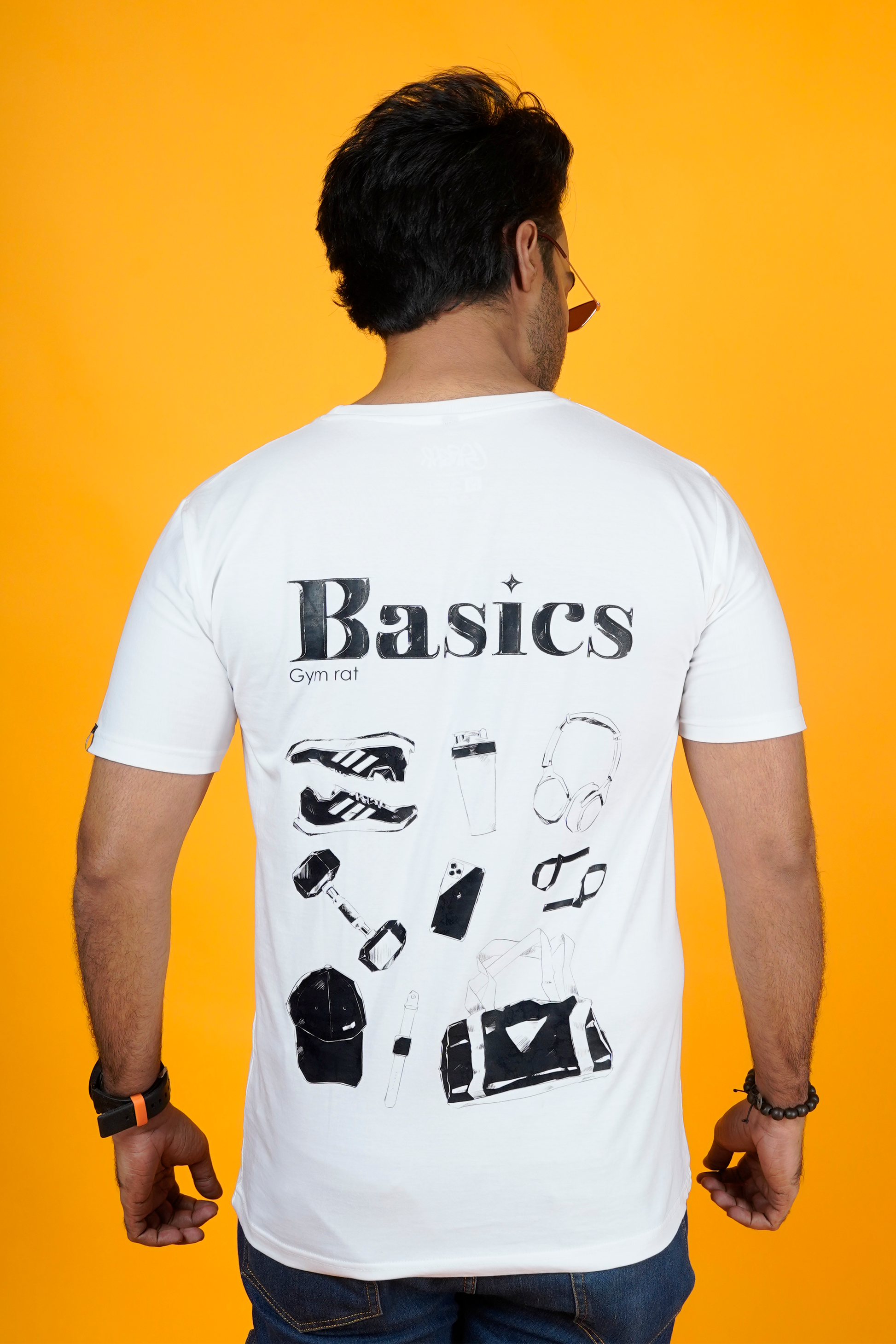For the ones who treat the gym like temple — this Gym Rat T-shirt is made just for you. With a clean sketched layout of essential gym gears, this tee brings your passion to life, one rep at a time.